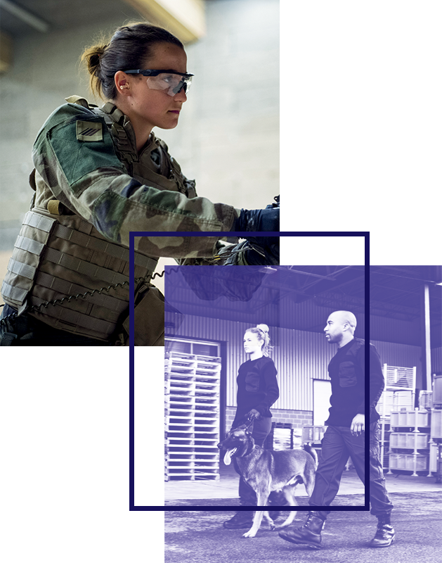 Gardien de la paix, sous-officier de gendarmerie, Spécialiste de la police technique et scientifique, gendarme n’tech, motard de la gendarmerie, officier, artilleur, maître-chien, armurier,chef d’engins blindés, officier marinier, quartier-maître, matelot, pilote de l’aéronautique navale, pilote de drone, expert cybersécurité…