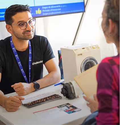 Direction la Station Événements, l'espace Exploration des Métiers et ou encore l'espace Changer de Métier pour expérimenter concrètement les métiers qui vous intéressent à travers des ateliers immersifs.